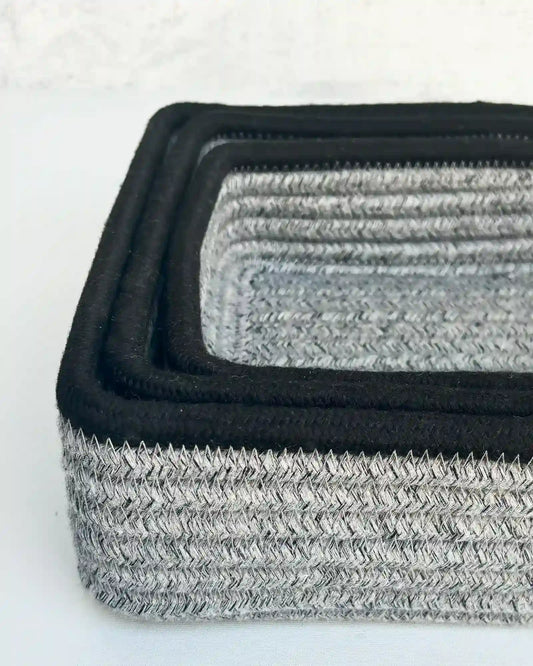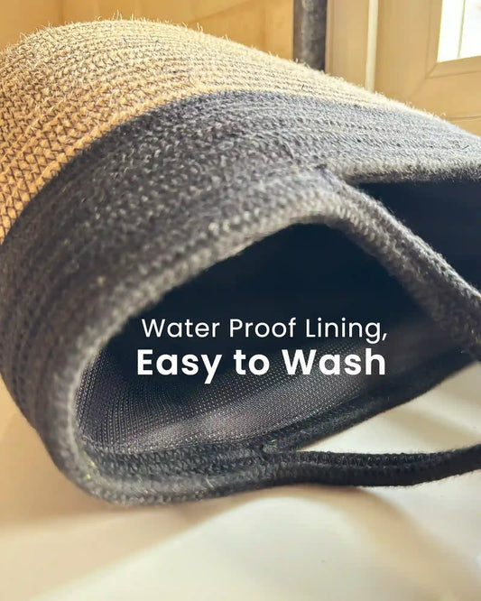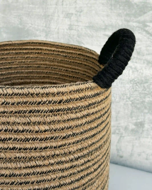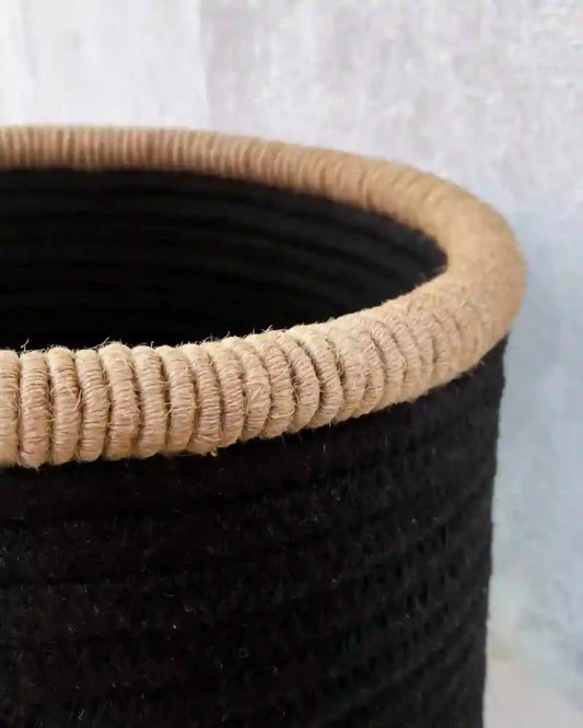 Black Cotton Multipurpose Basket With Jute Coiling (12"Dia x 10" Height)