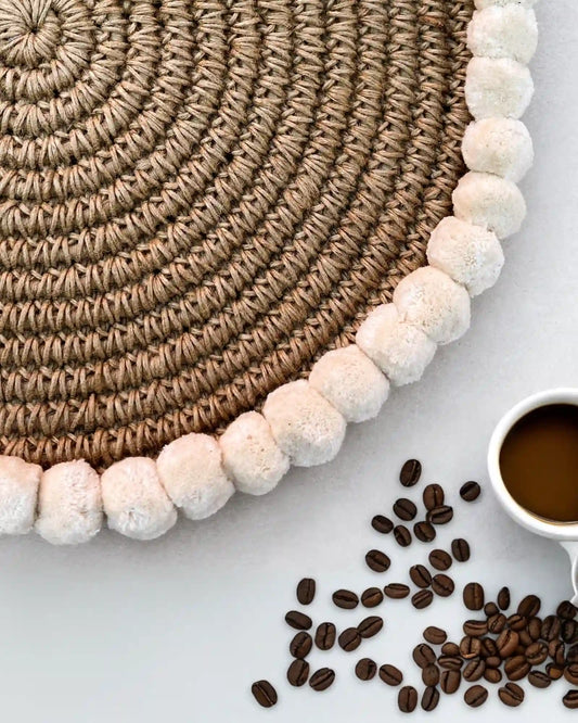 [Set of 3] Crochet Placemat with Cotton Pom-Poms (Pack of 3)