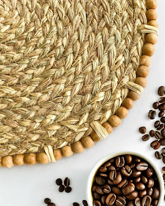 Braided Paddy Stubble Placemat With Wooden Beaded Edges (Pack of 3)