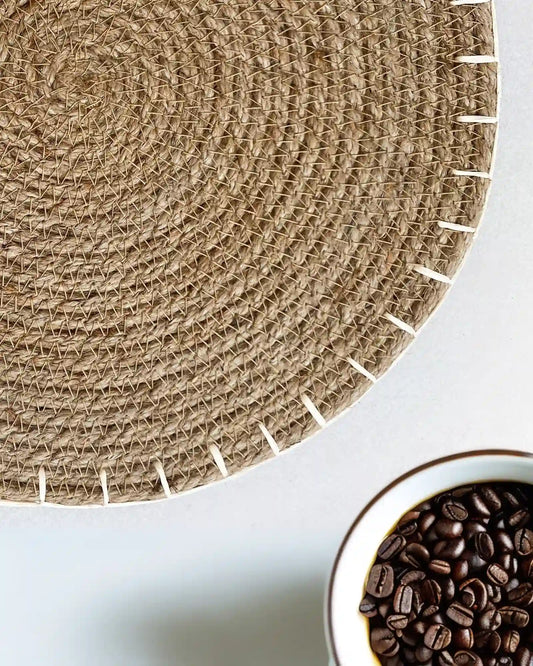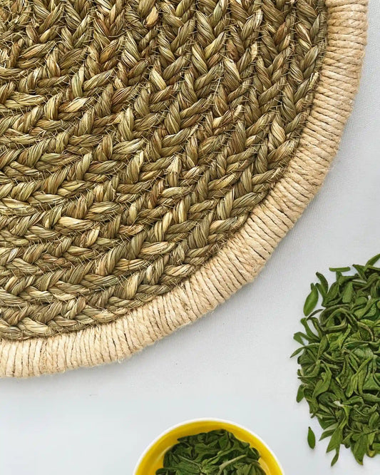 Hand Braided Seagrass-Moonj Placemat with Embroidered Edging (Pack of 3)