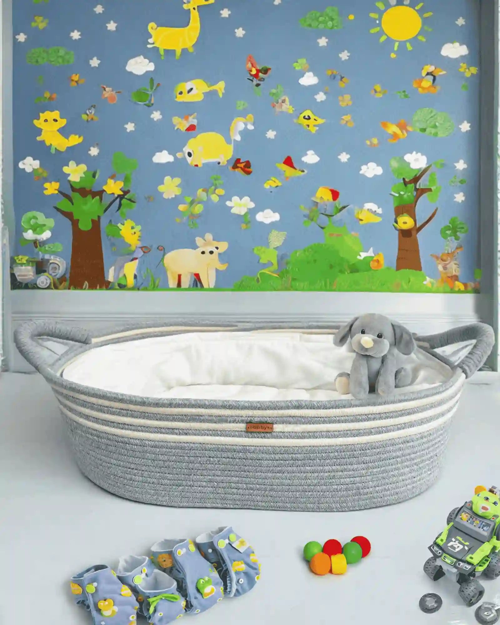 Introducing a beautiful, minimal baby cot cum diaper changing bed for new parents that will bring immense convenience to your baby and your life. This baby bed comes with ultra-soft Aloe-vera fabric cushioning that ensures a comfortable environment for your baby. Being made of cotton, the material is baby safe, hypo-allergenic and easy to clean. The strong handles on the sides make it easily portable.