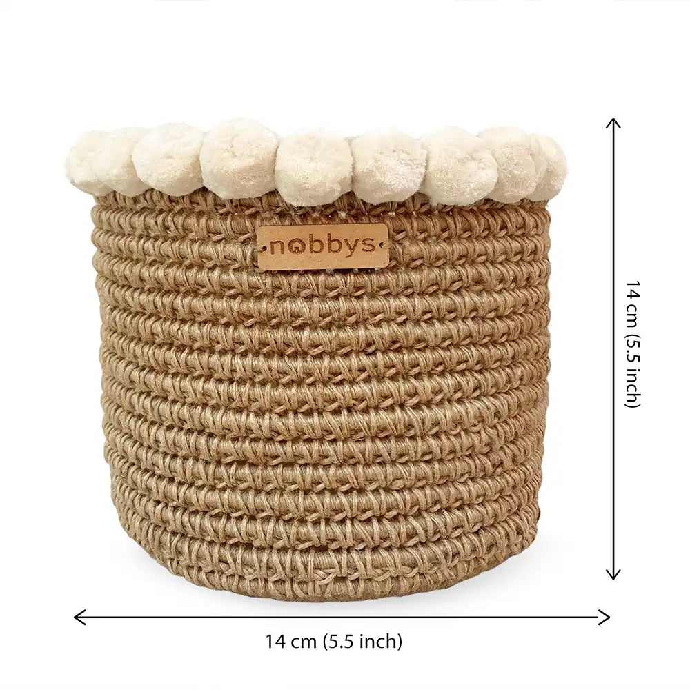 Crochet is an age-old weaving technique that results in an intricate handwoven pattern. These patterns blend well with any kind of home decor, and the cotton pom poms are a lively finishing touch to the warm, natural vibe of the planter.