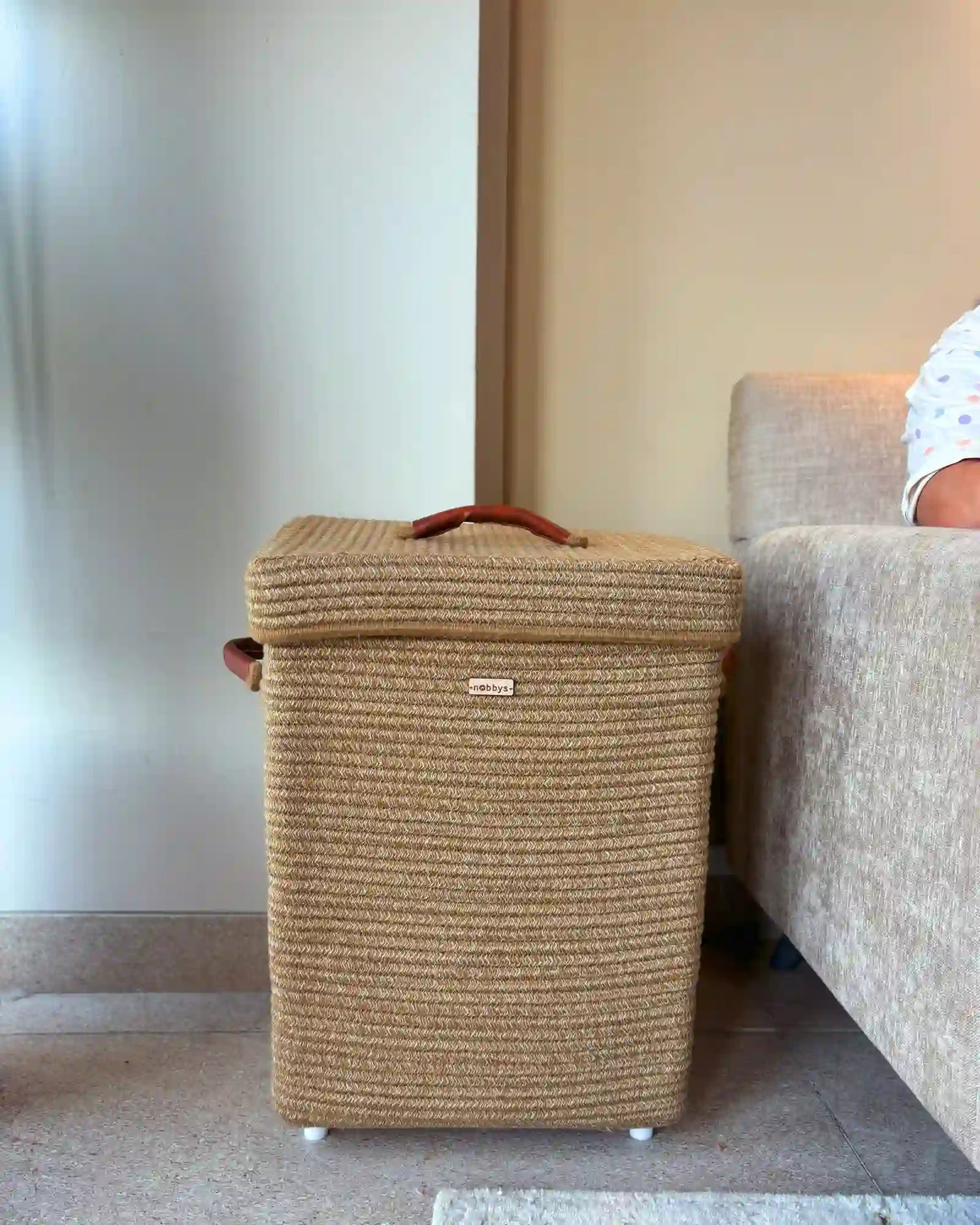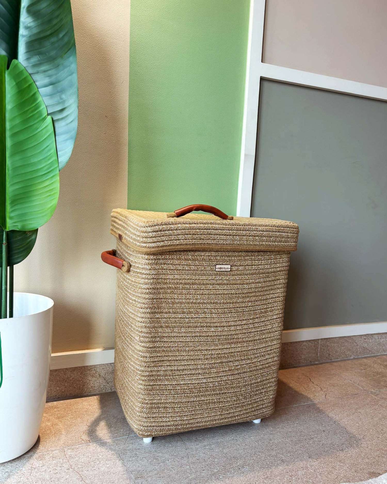 👑 Elite - Woven Roots Laundry Basket with Lid and Wheels